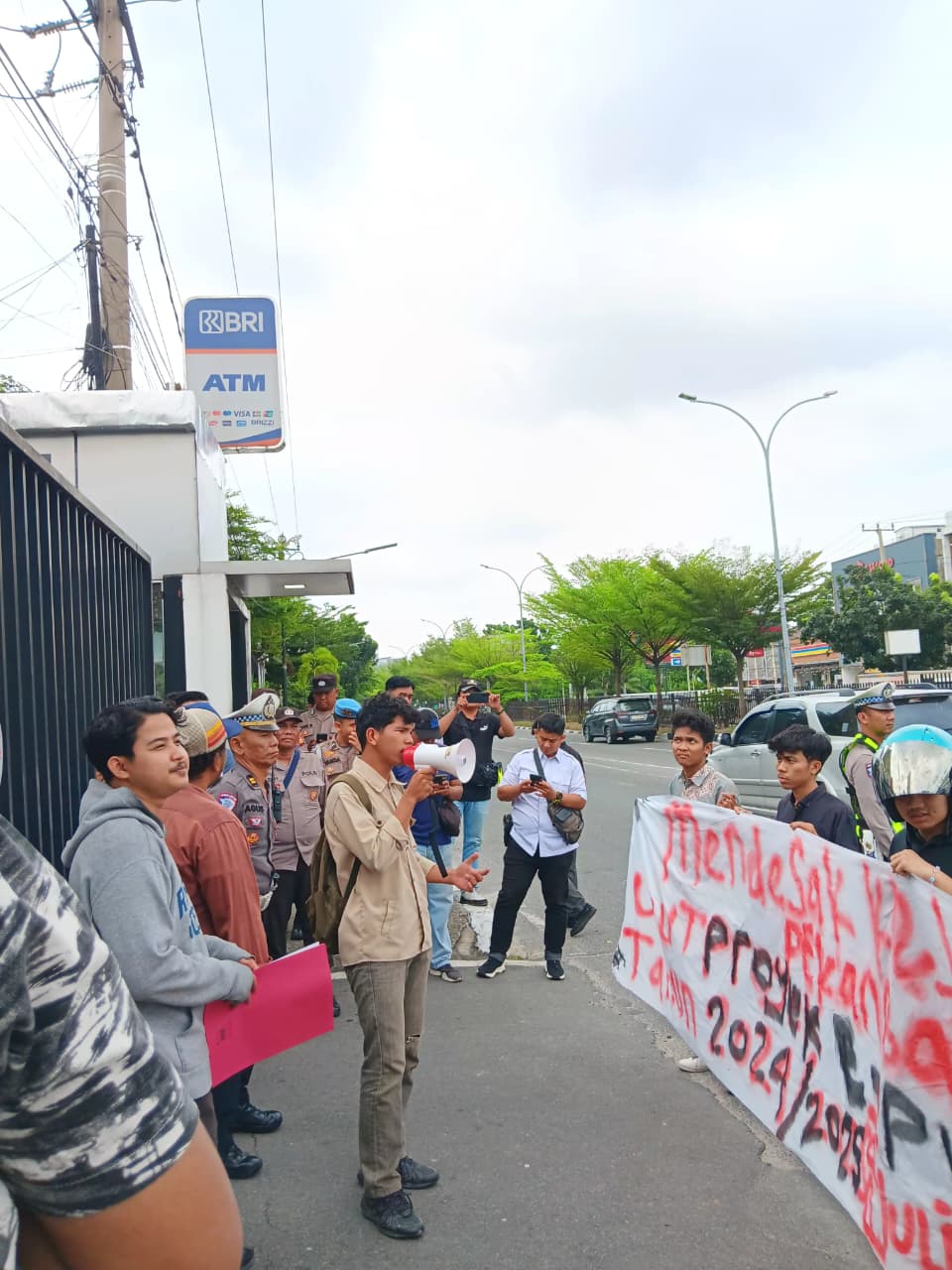 Aksi yang diikuti kurang lebih 100 massa ini merupakan bentuk penyampaian aspirasi atas dugaan penyimpangan dalam pekerjaan Pemeliharaan Pedestrian Jalan Utama UNRI Tahun Anggaran 2025.